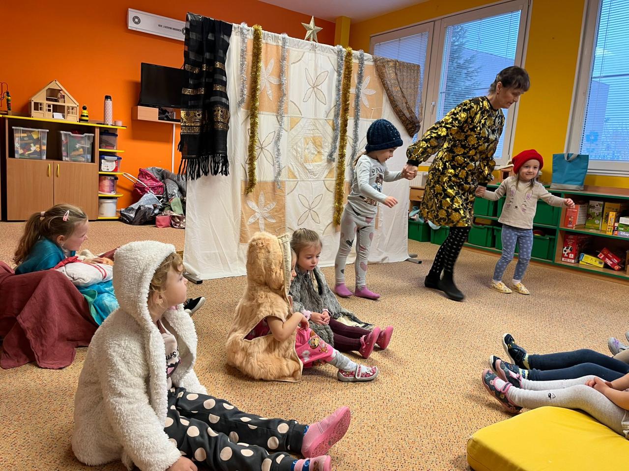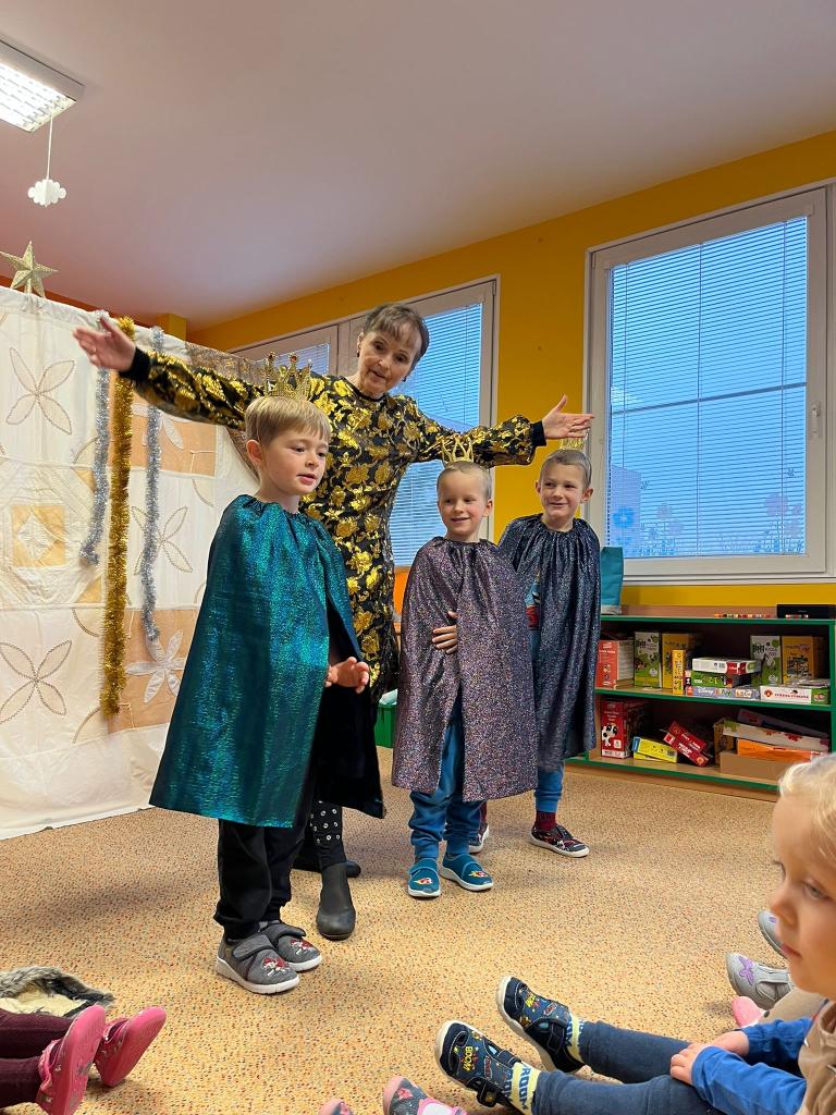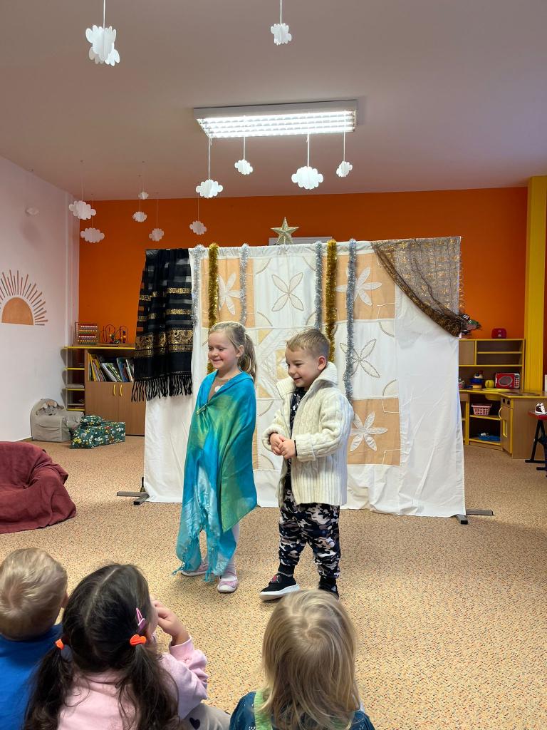 Do MŠ přijela zahrát paní Hrušková s příběhem o vánoční hvězdě. Společně jsem si zahráli divadlo a zapívali vánoční písně.