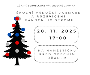 Ve spolupráci se ZŠ Bohuslavice proběhne ve čtvrtek 12. 12. 2024 od 16:30 vánoční zpívání.